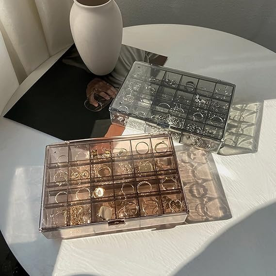 Store and display your jewelry in style with this 3-layer acrylic organizer. Featuring multiple drawers and compartments, it keeps rings, earrings, necklaces, and accessories neatly arranged while protecting them from dust. Its clear design adds elegance and easy visibility to your collection.